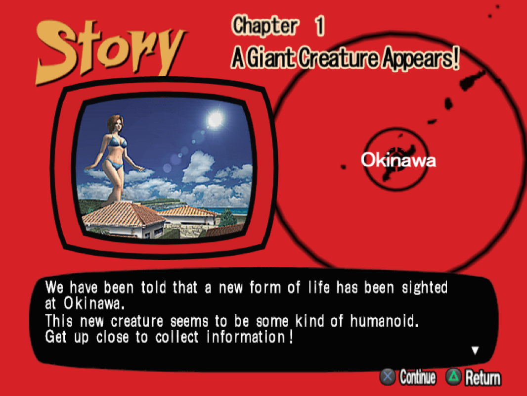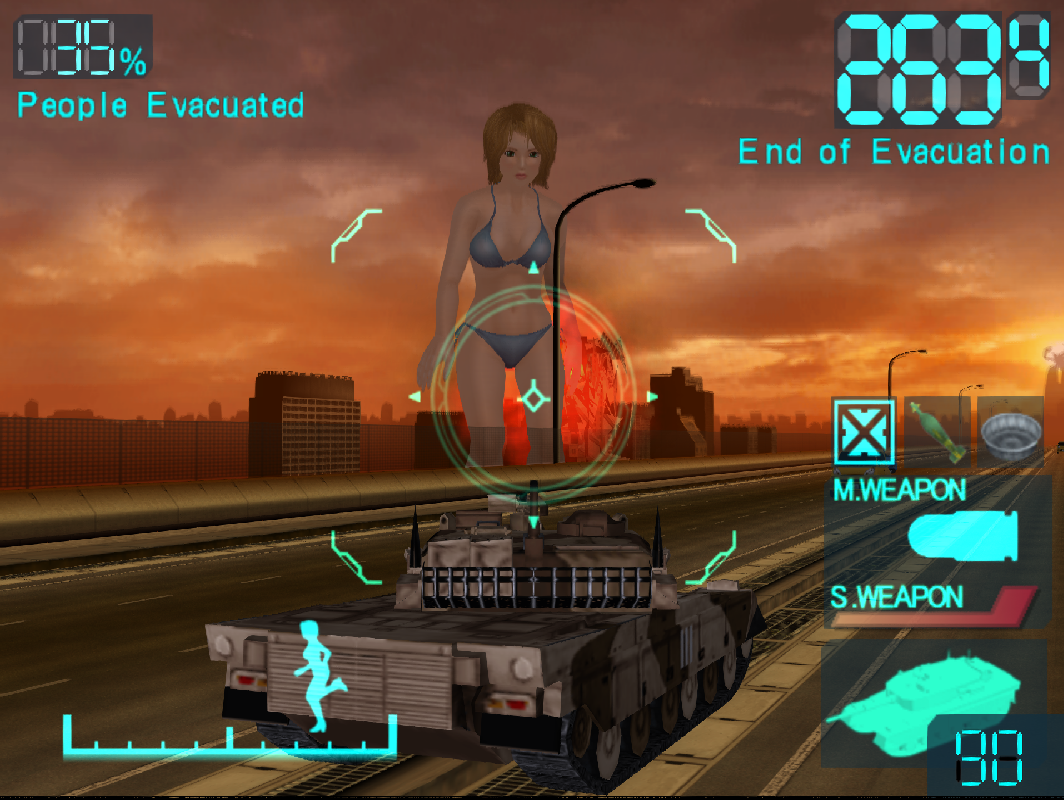 And so we arrive at perhaps the most notorious Riho Futaba game: Demolition Girl. This game has a very dedicated fanbase, due to its… peculiar premise. To put it simply: Riho Futaba gets bit by an alien, which turns her into a giant, bikini-clad woman. The military then have to get called in to deal with the situation as Riho and the aliens rampage across Japan.