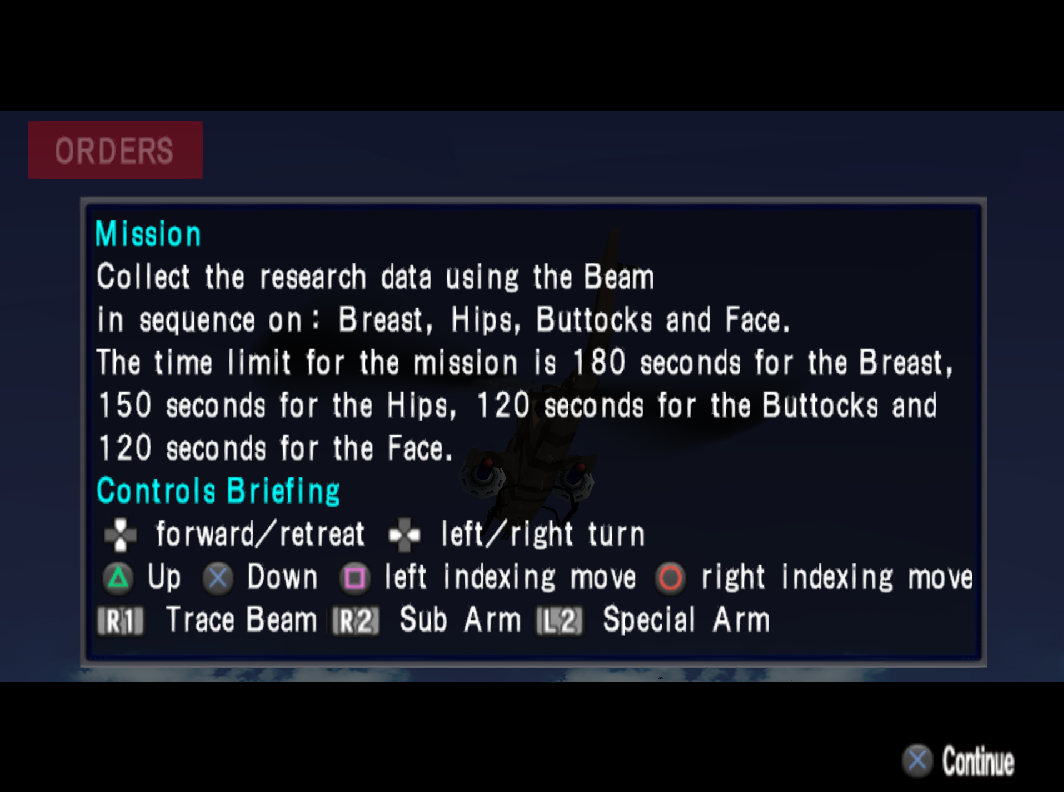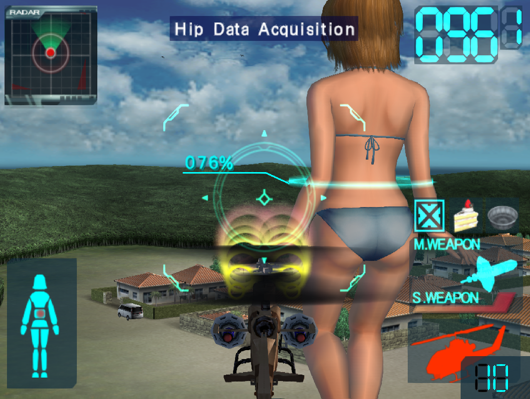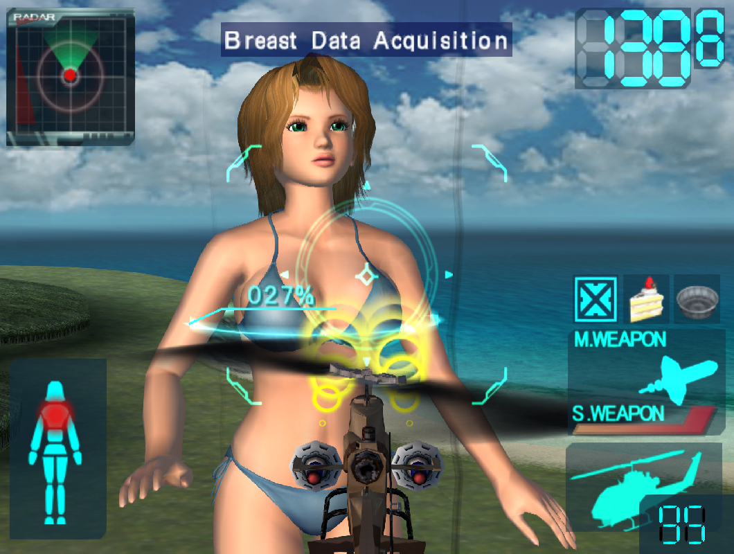 The very first mission in this game tasks you with flying up close and using a scanner to obtain Riho Futaba’s enlarged breast/waist/hip measurements. Remember, you’re operating a military helicopter to do this. It’s so stupid that I love it.