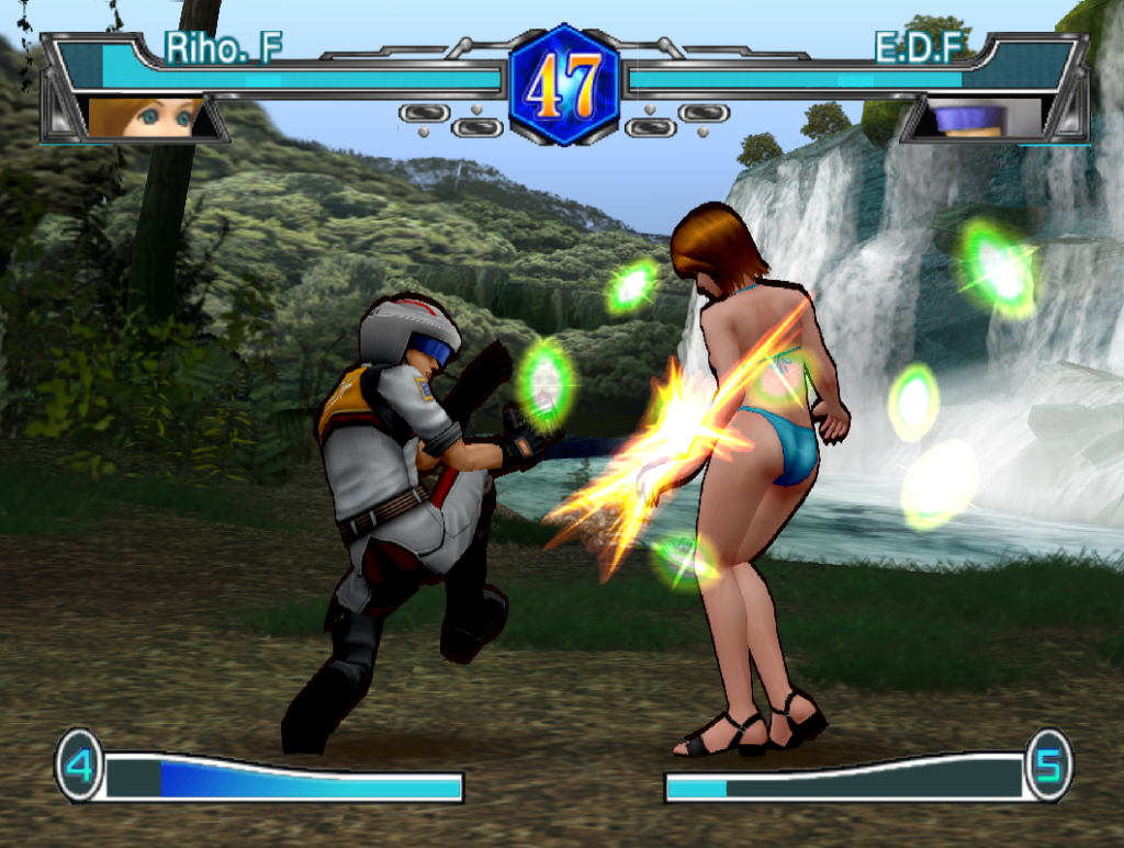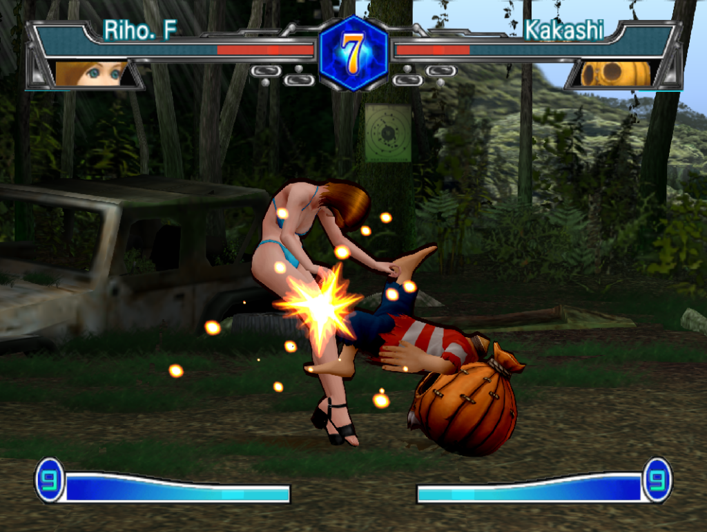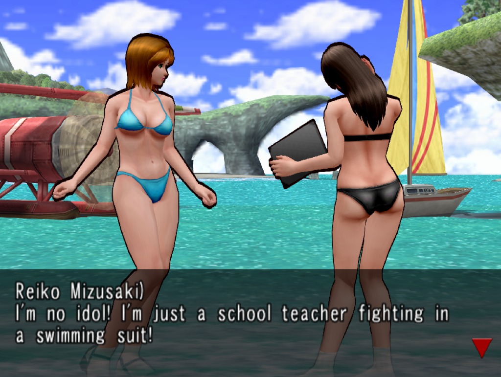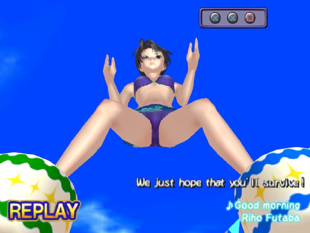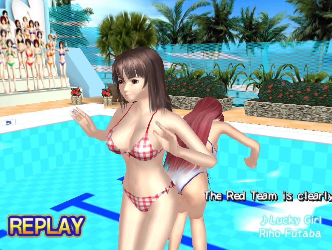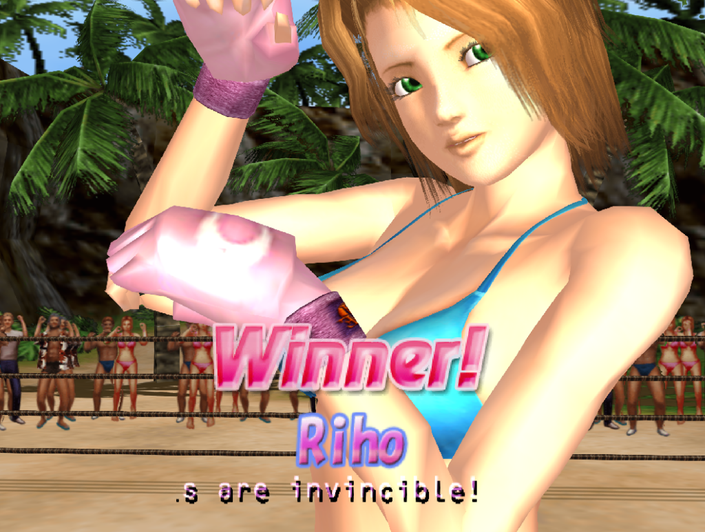 - So obviously there’s Riho Futaba, sporting her signature blue bikini. She has some of her moves from Fighting Angels and seems like more of a cutesy/joke character, despite also being arguably the game’s main heroine.