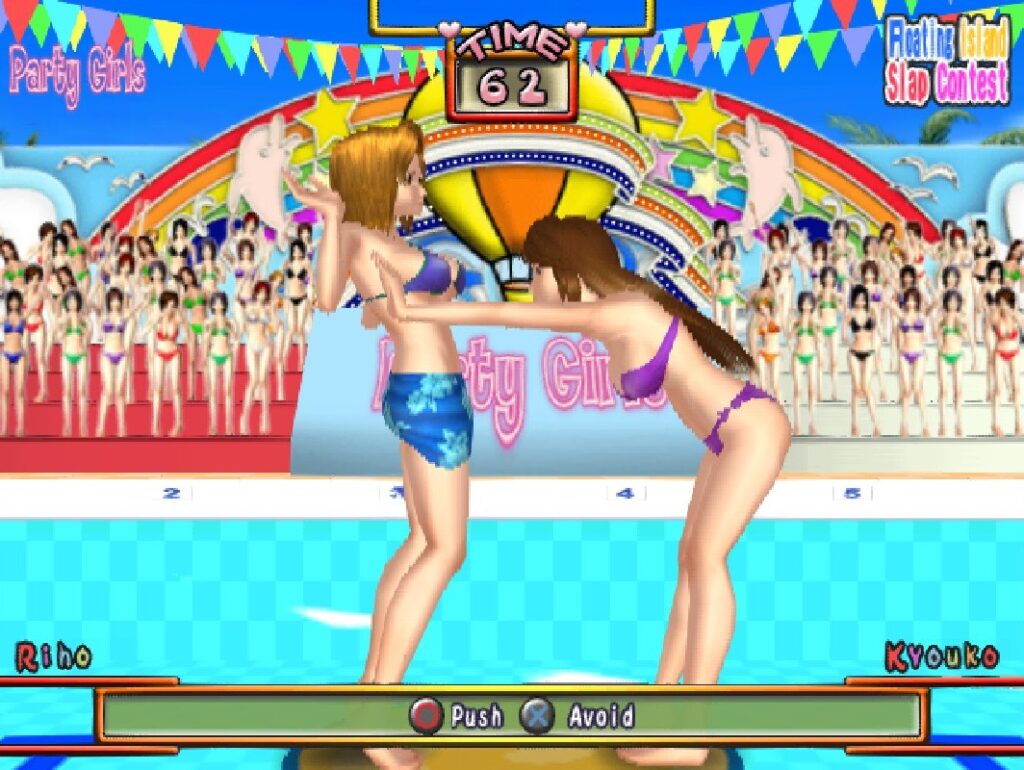 Okay, so my initial impression was that Party Girls was a Dead or Alive Xtreme knock-off, but I’m not sure that that’s actually the truth here. At its core, Dead or Alive Xtreme Beach Volleyball is a vacation and sports simulator; Party Girls is more akin to one of those goofy, Japanese gameshows, which gives it an entirely different feel. DOAX is relaxing, chill, and slow-paced, whereas Party Girls is manic and energetic. Hell, if anything, Dead or Alive may have been the one who ripped Party Girls off, because this game had its own version of butt battle two years before it was introduced in Dead or Alive Xtreme 2 (with nearly-identical mechanics to booty!!!).