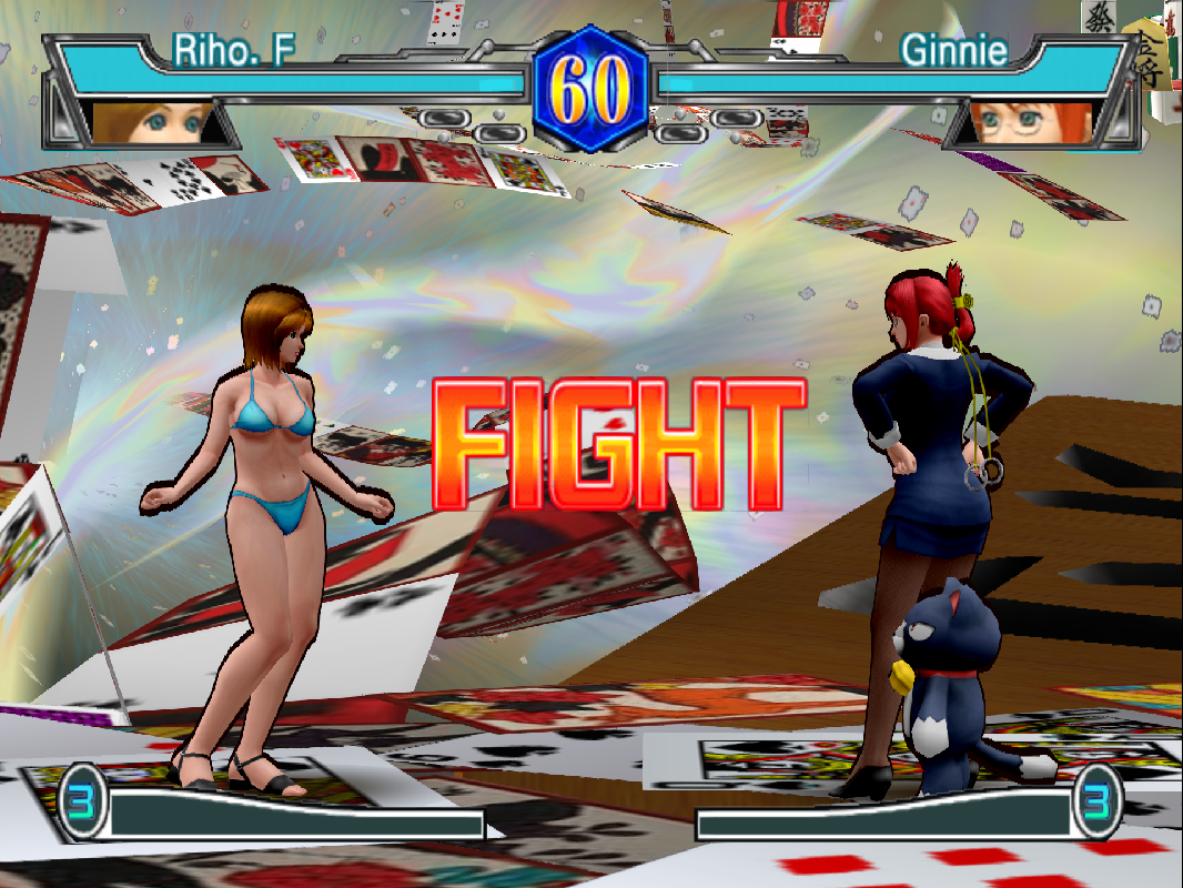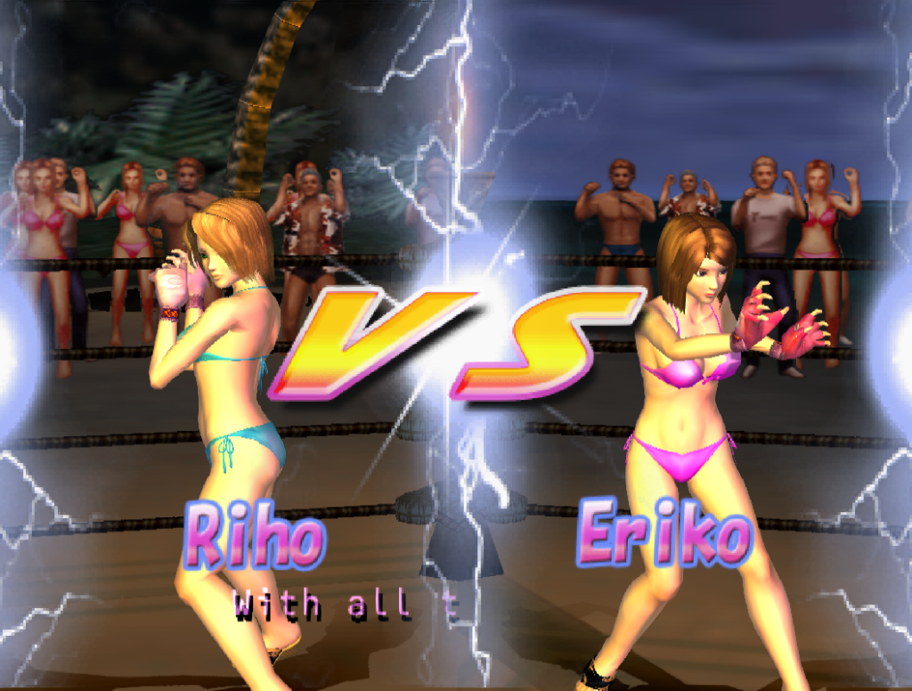 Less than a month after Demolition Girl, Riho Futaba’s next game came out: Fighting Angels. That’s right, we’ve got another low-budget fighting game from D3 Publisher, but this time it’s got a bunch of women in bikinis beating each other up! Finally, the extra bit of spice that World Fighting was missing!