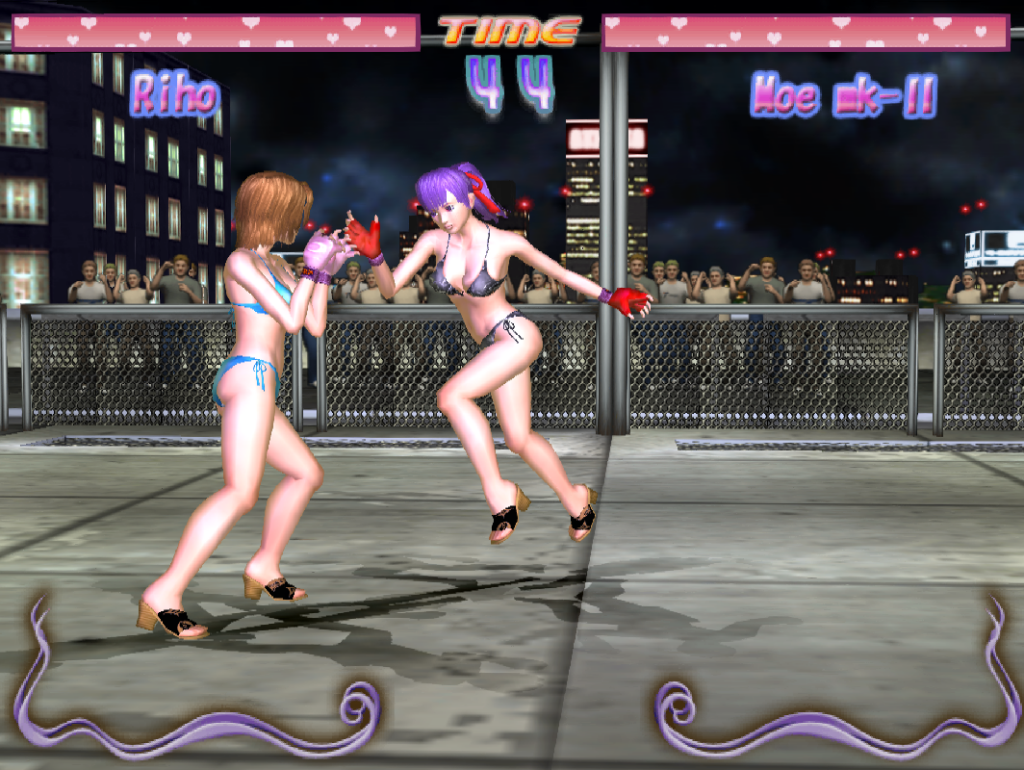 Demolition Girl looks… decent, I guess. It’s clearly been cobbled together from random assets (including Riho’s character model, which is lifted directly from Pink Pong), but it looks more impressive than World Fighting, at least.