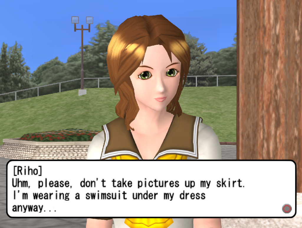 I’m glad that I did too: for the first time since we started this article, Paparazzi actually made me like Riho as a character. Riho Futaba has been relegated to vapid eye-candy in every game we’ve seen her in thus far, but here she finally gets a chance to show off her genuinely charming personality. She comes across as very professional, personable, polite, and adorably bashful when she’s embarrassed. She’s not exactly a deep or unique character, but she seems really nice and you enjoy getting to hang out with her. This is by far my favourite Riho: looks, personality, everything is great!